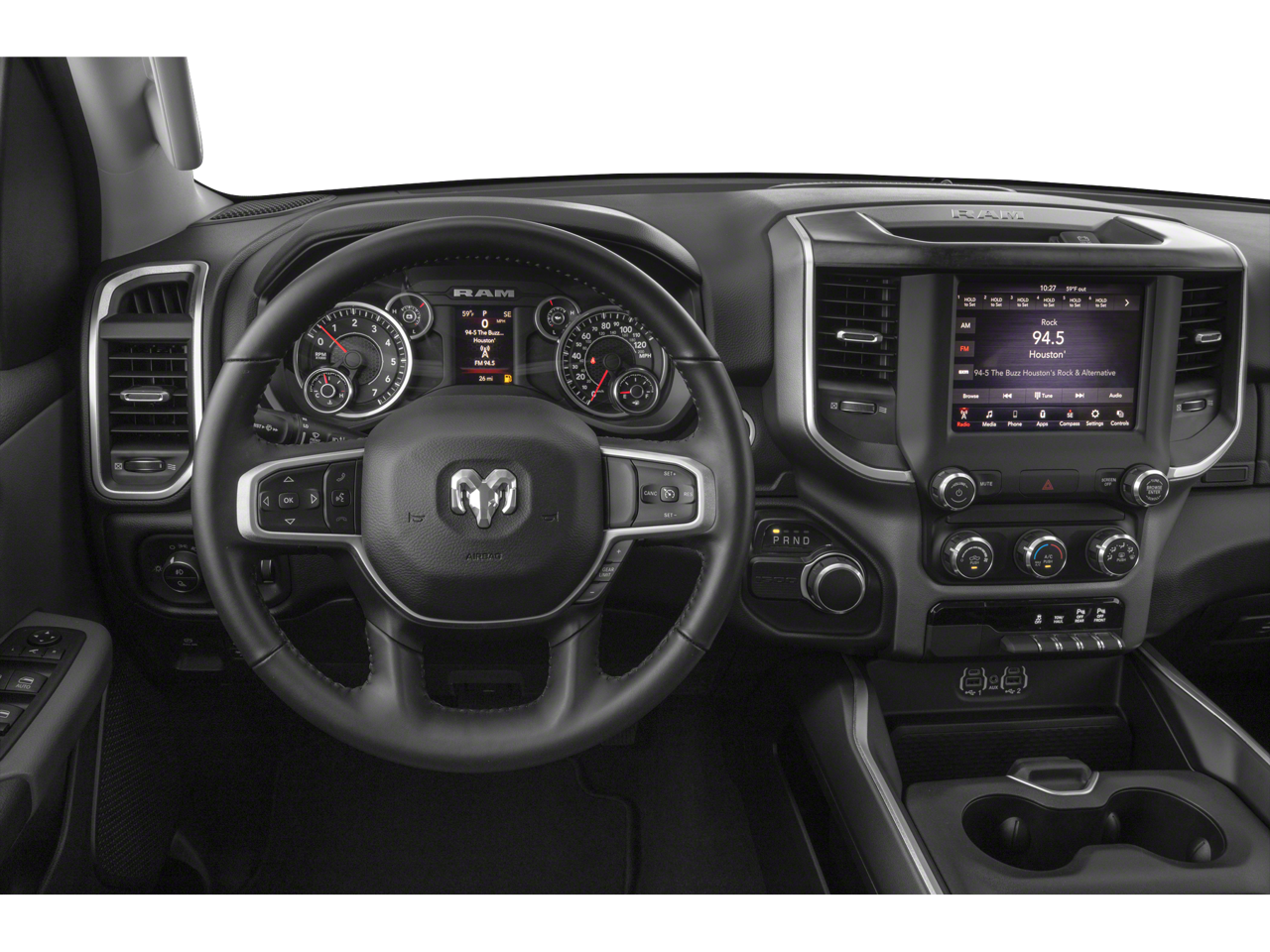 Big Horn Level 2 Equipment Group with power driver seat, heated front seats and steering wheel, rear parking aid, remote start, universal garage door opener, and tow hitch